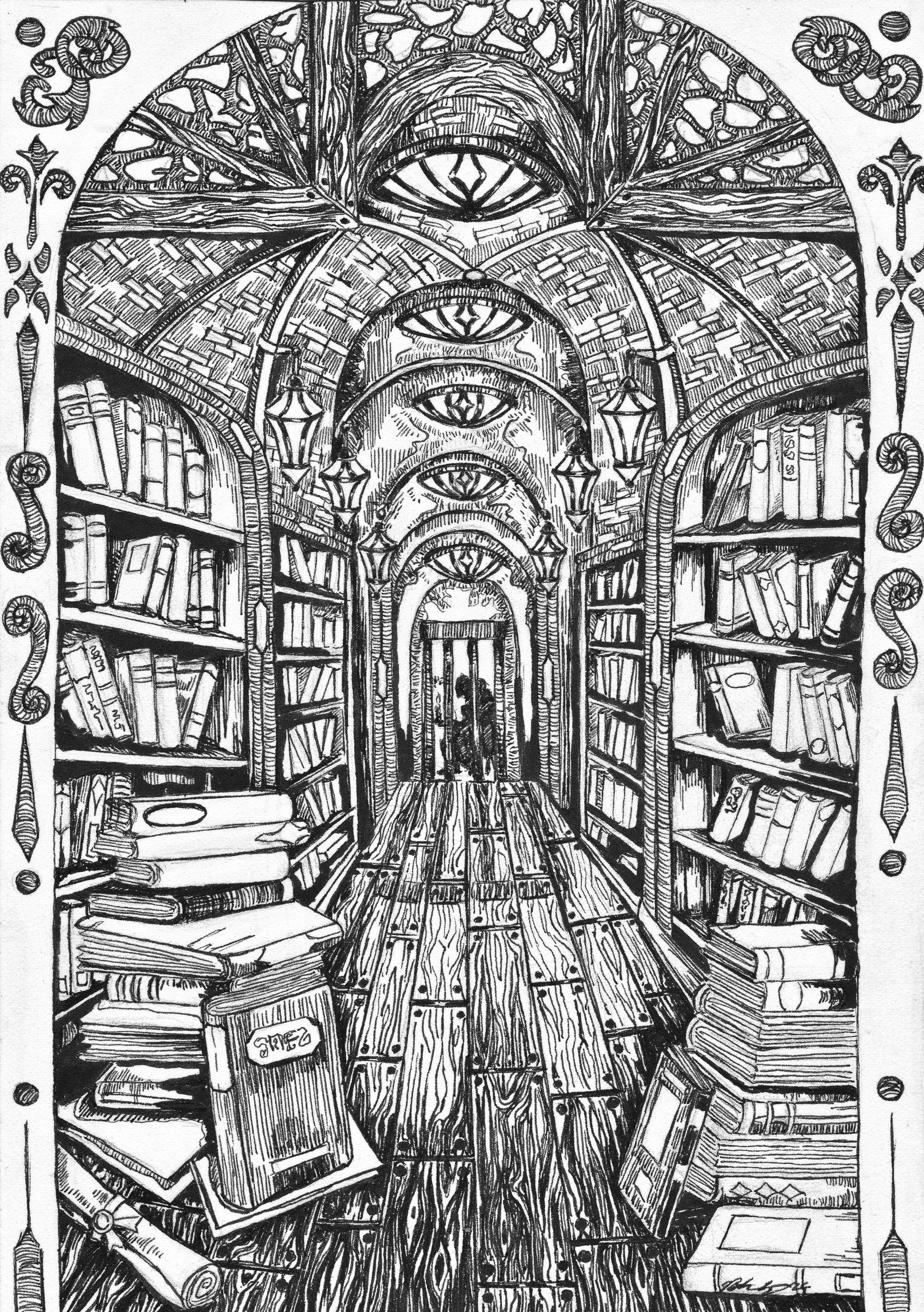Black and white illustration on textured cardstock paper. From the world of Tales Untold (TU) and RPG/LARP studio 'Unlikely Stories.'